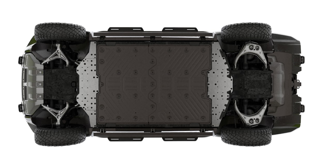 Utilizing steel plates and shields around the drive unit and battery pack, available full underbody armor, available skid plates and available rocker protectors help protect HUMMER EV SUV in off-roading environments and are only included in the available Extreme Off-Road Package.